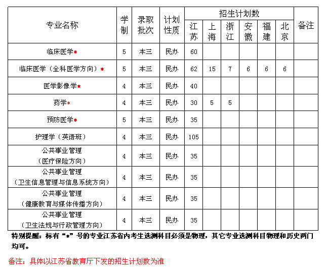 南京医科大学康达学院2009年招生计划