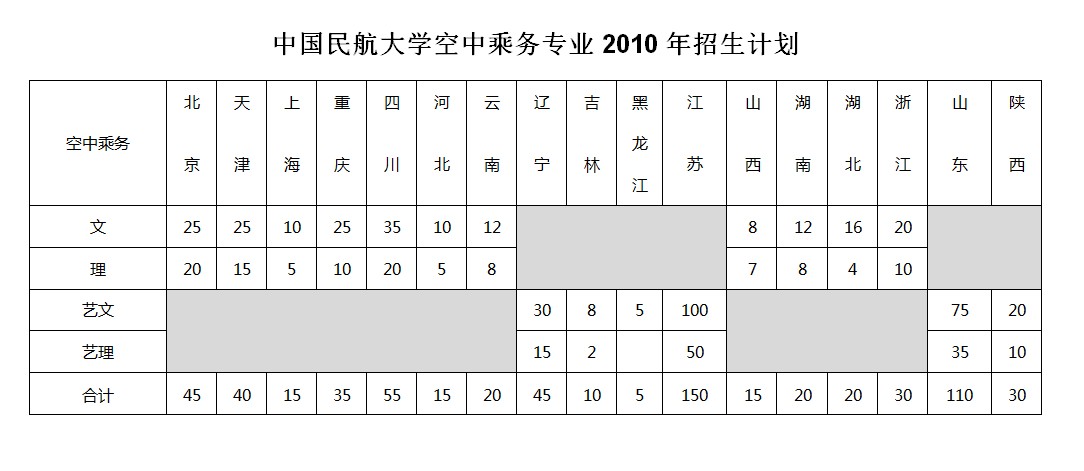 [图文]中国民航大学空中乘务专业2010年招生计划