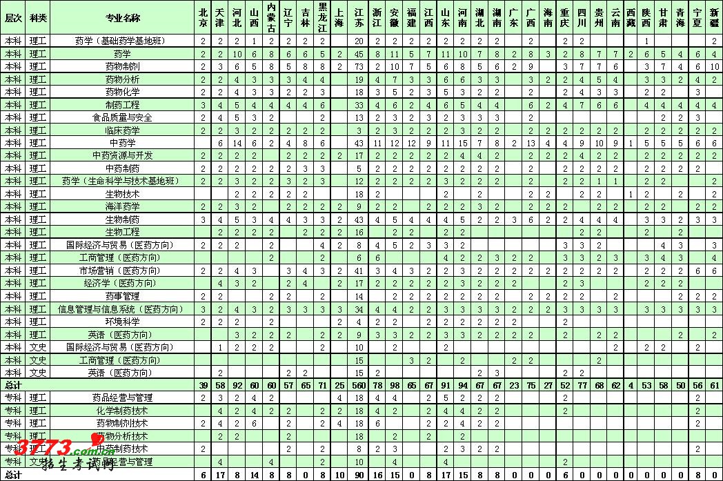 [组图]中国药科大学2012年本专科招生计划
