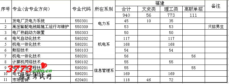 [图文]福建电力职业技术学院2012年福建招生计划940人