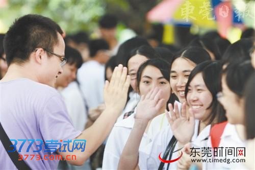 ■2013年6月7日,高考第一天,东莞第四高级中学,老师在给考生加油鼓劲
