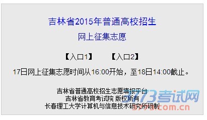 志愿填报时间:2015-07-17 16:30:00 至 2015-07-18 14:00:00