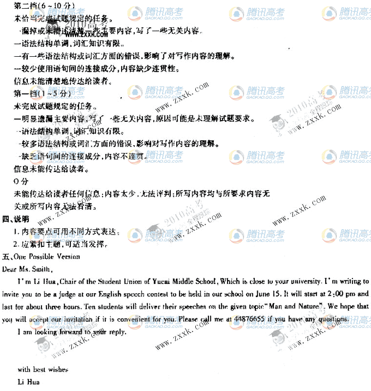 [组图]2010年宁夏吉林黑龙江高考英语试题答案