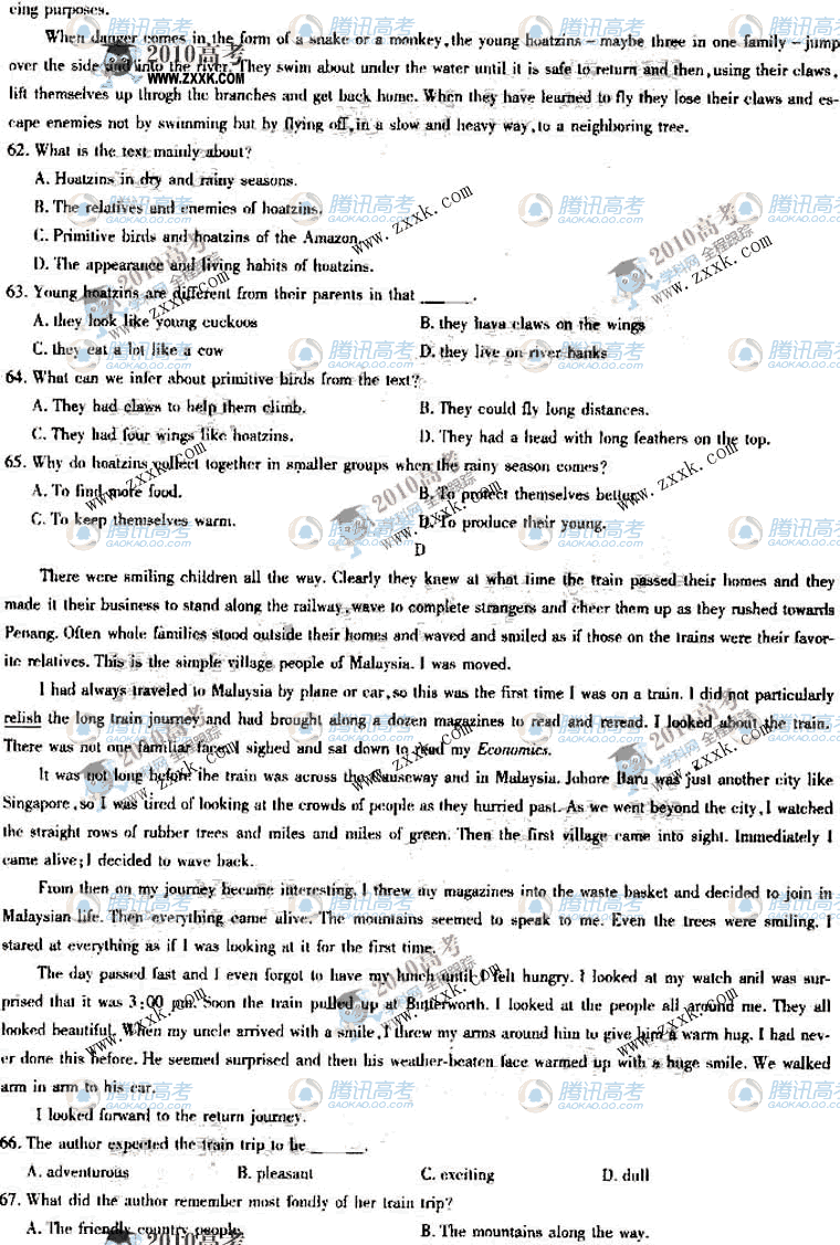 [组图]2010年宁夏吉林黑龙江高考英语试题答案