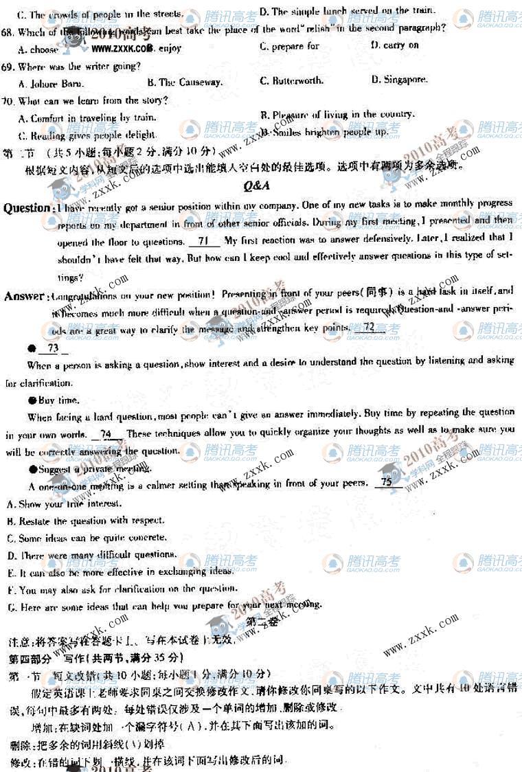 [组图]2010年宁夏吉林黑龙江高考英语试题答案