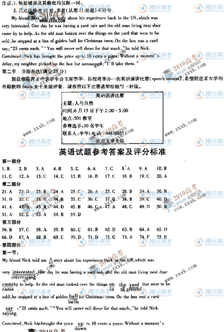 [组图]2010年宁夏吉林黑龙江高考英语试题答案