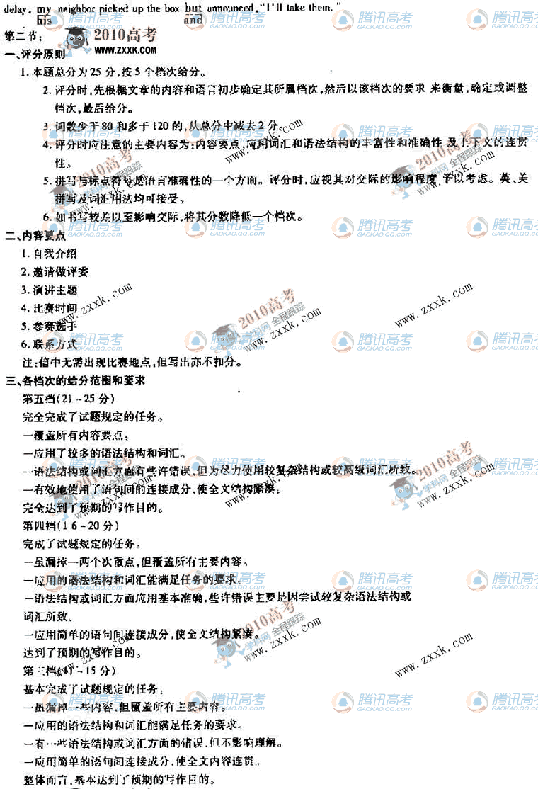 [组图]2010年宁夏吉林黑龙江高考英语试题答案