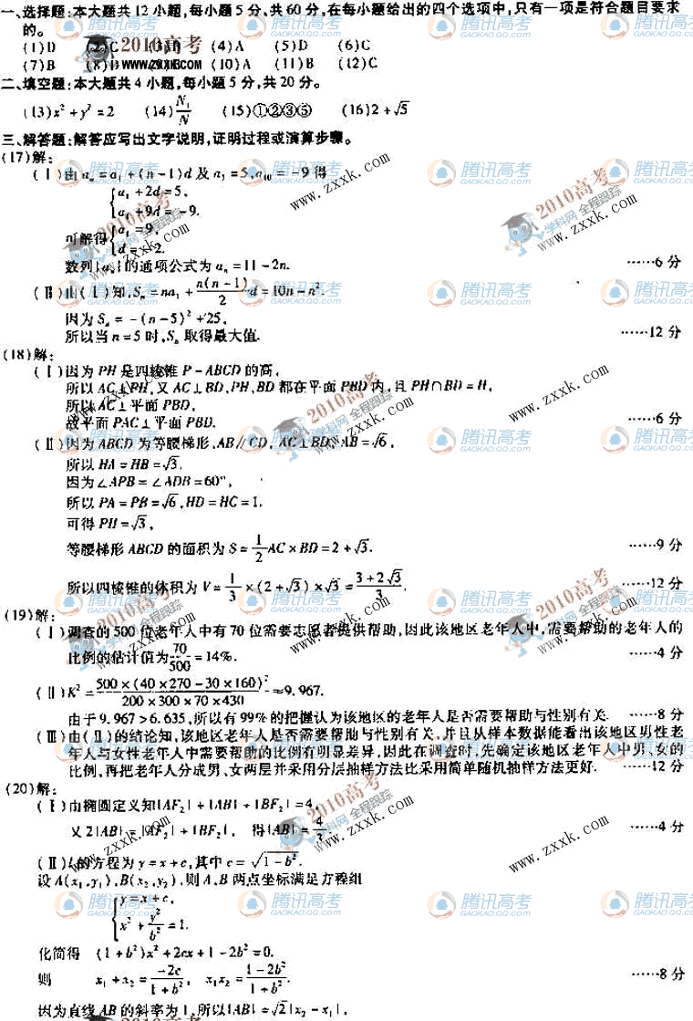 [组图]2010年宁夏吉林黑龙江高考数学文试题答案