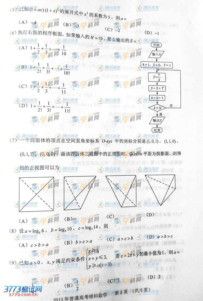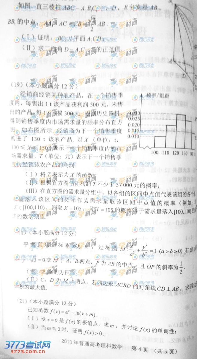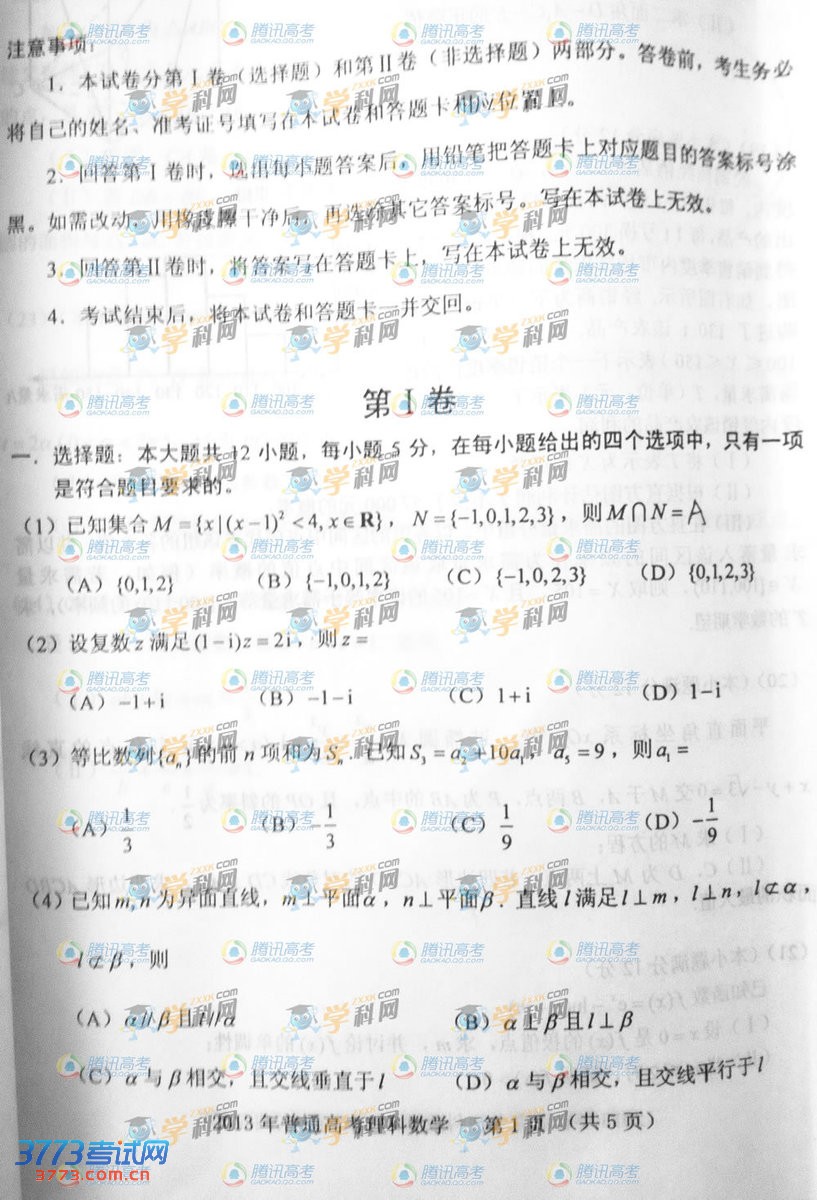 2013新课标1卷理科数学试题试卷,适用地区:河南 黑龙江 吉林 宁夏 山西 新疆 内蒙古 云南 河北。
