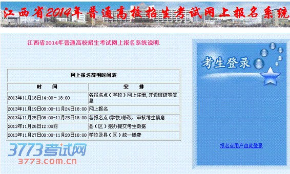 江西省2014年普通高校招生考试网上报名入口