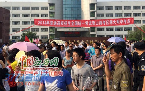 中国江西网快讯记者叶新阔摄影报道:6月7日上午9时,一年一度的高考正式拉开帷幕。开考前,在江西师大附中考点和南昌一中考点,考生陆续步入考场。当天上午开考的科目为语文。