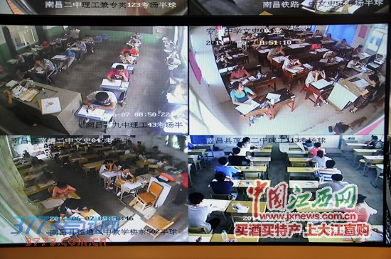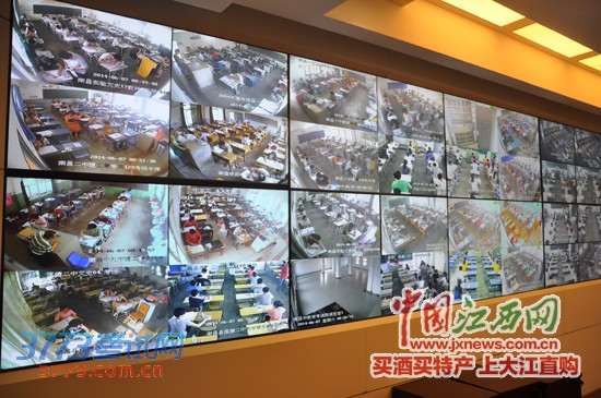 7日上午,记者在南昌市教育考试院指挥中心看到,南昌市1213个高考考场内的监控画面都被实时同步传送到这里。