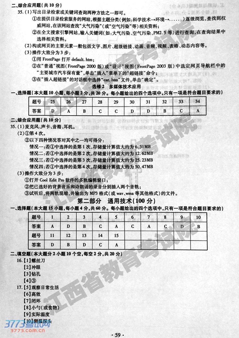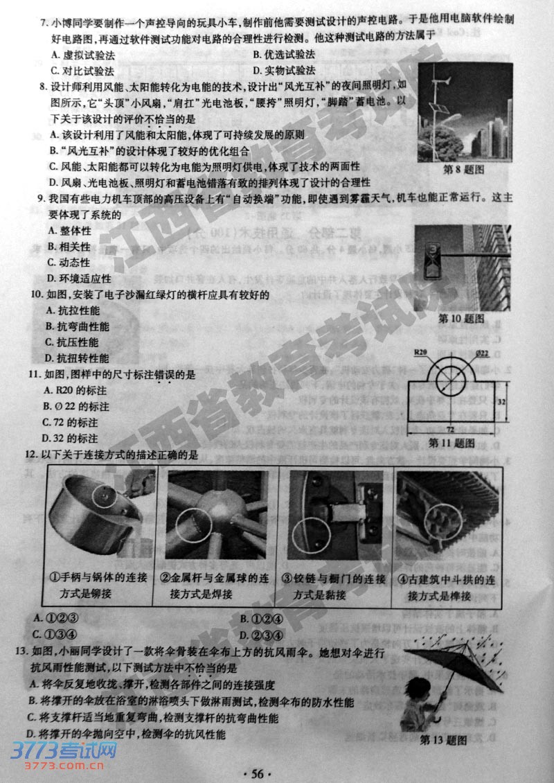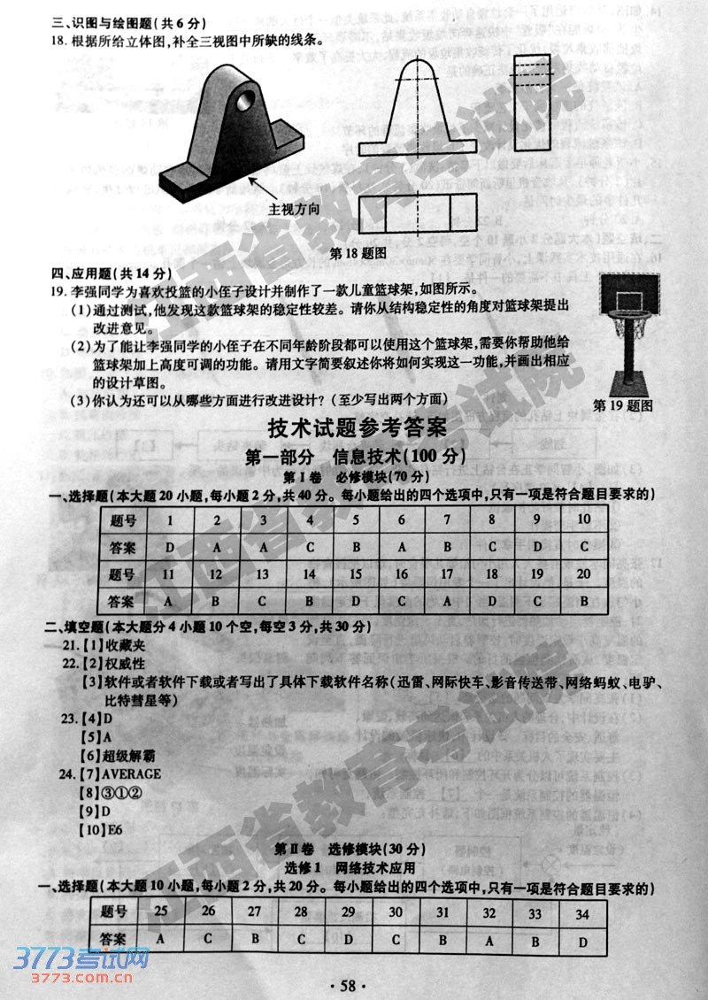 [组图]2014年江西高考技术试题及答案