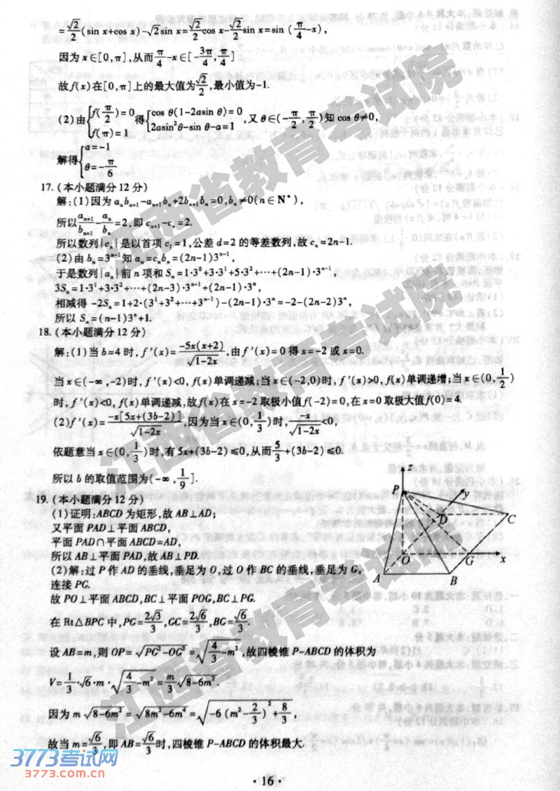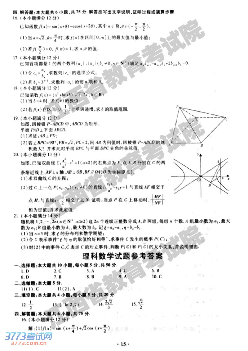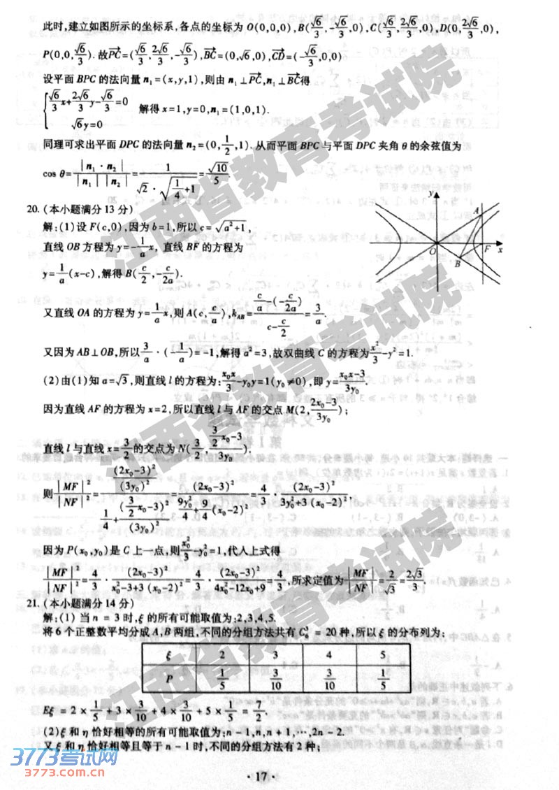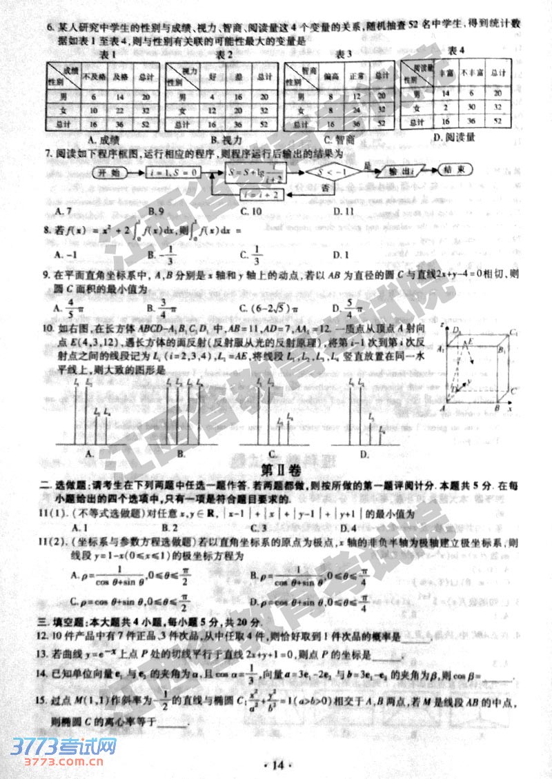 [组图]2014江西高考理科数学试题及答案发布