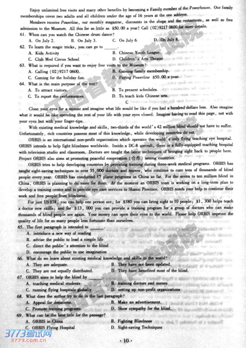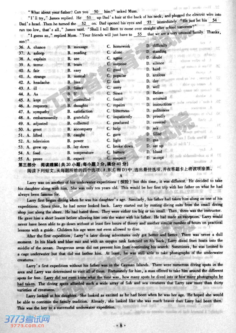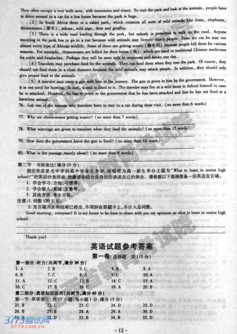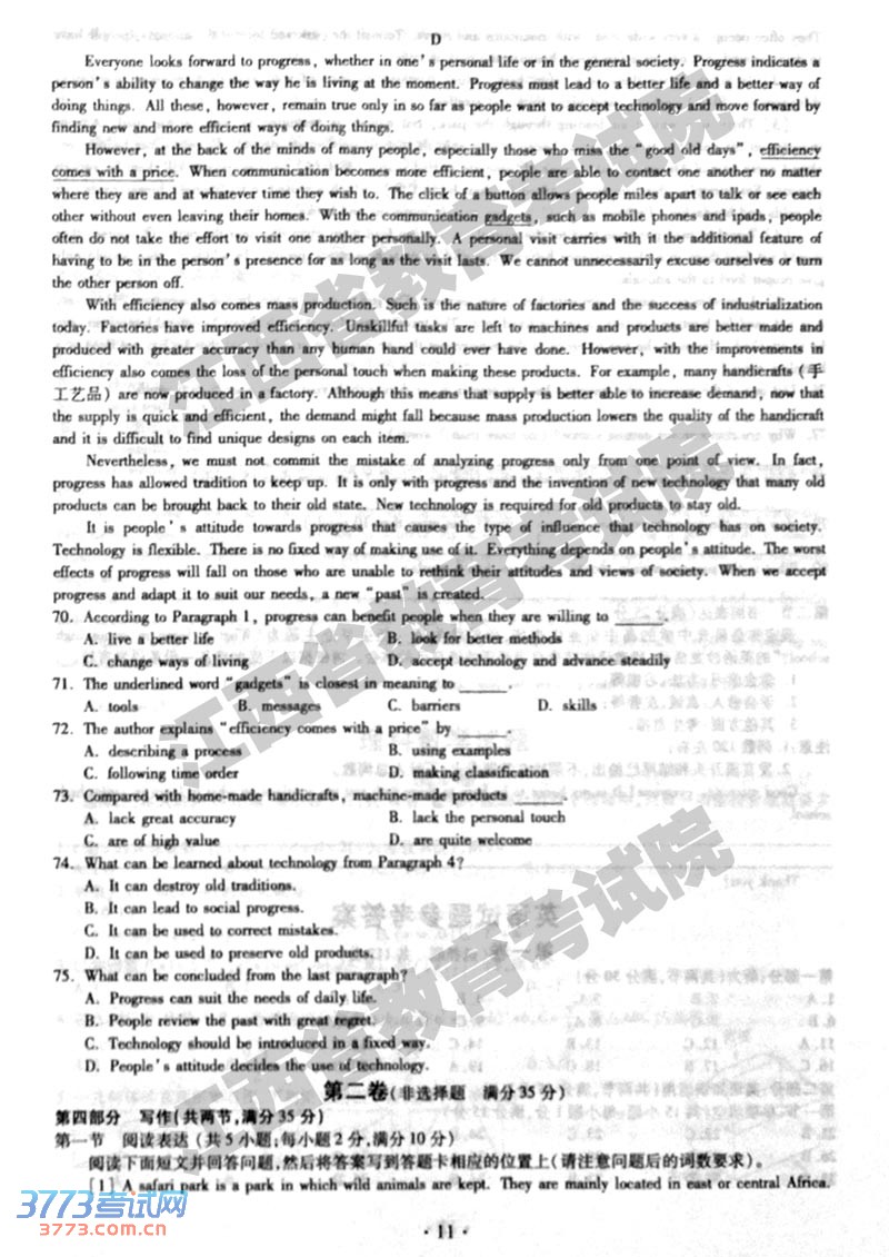 [组图]2014江西高考英语试题及答案发布