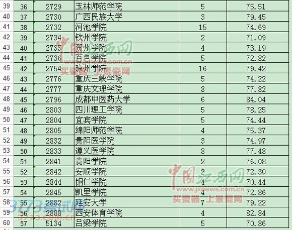 [组图]2014江西高招体育类提前批次各高校投档线发布
