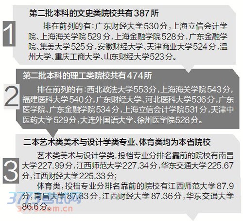 本省院校生源质量进一步好转,除刚升格的本科院校和民办本科院校有缺额外,其他院校生源充足。江西师范大学、江西财经大学、华东交通大学和南昌航空大学的软件类生源满额,其他院校的软件学院尚有缺额。