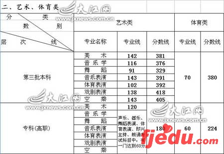 据悉,今年江西第三批本科(独立学院)艺术类录取文化控制分数线,执行第二批本科录取文化控制分数线,如生源不足,在取得第三批本科以上专业合格证的考生中,按文化逐分下降,录满为止。