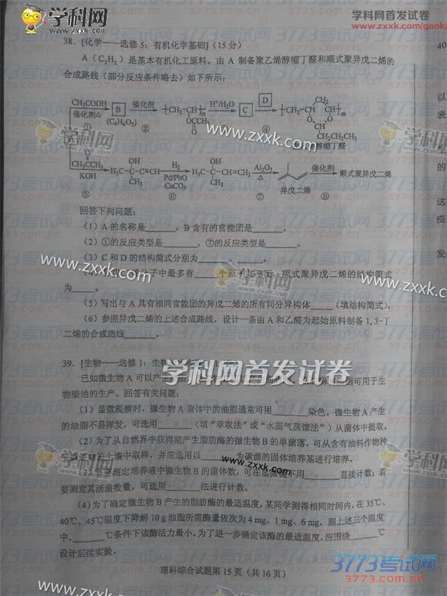 2015年新课标1理科综合高考试题及答案(图片) 新课标1:适用地区:河南 河北 山西 江西 湖北 湖南 陕西