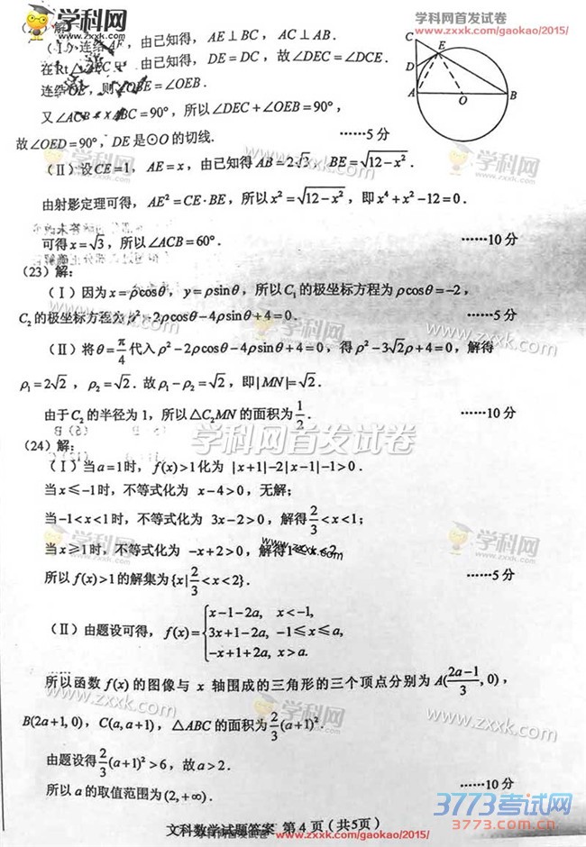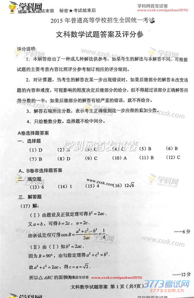 2015年新课标1数学文科高考试题及答案 适用地区:河南、河北、山西、江西