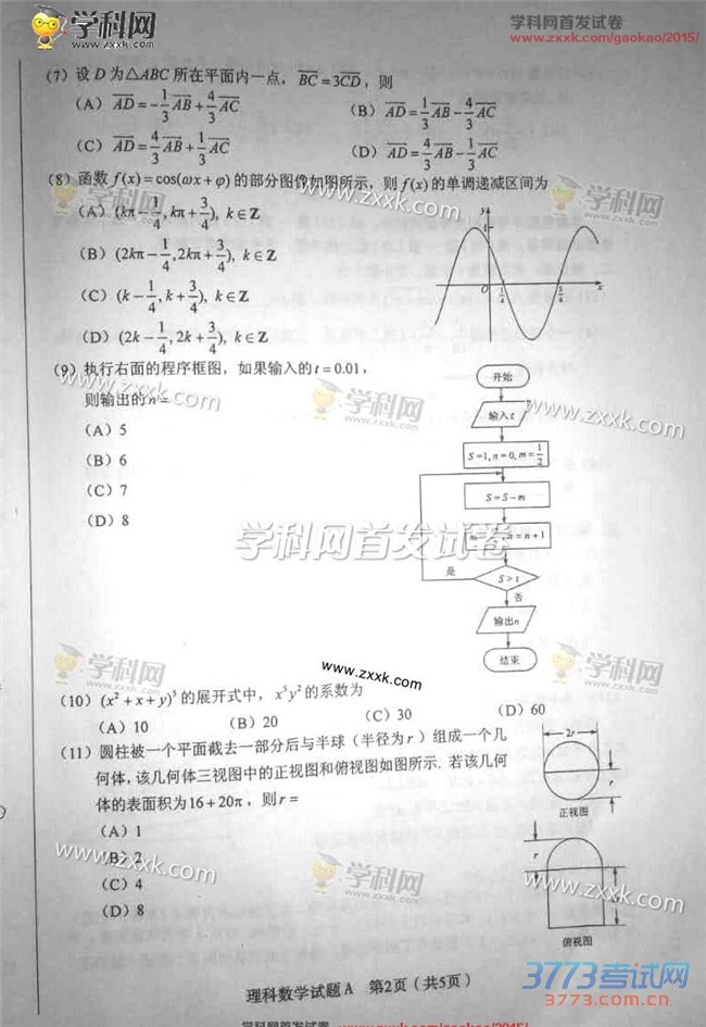 2015年新课标1数学理科高考试题及答案(图片)适用地区:河南 河北 山西 江西