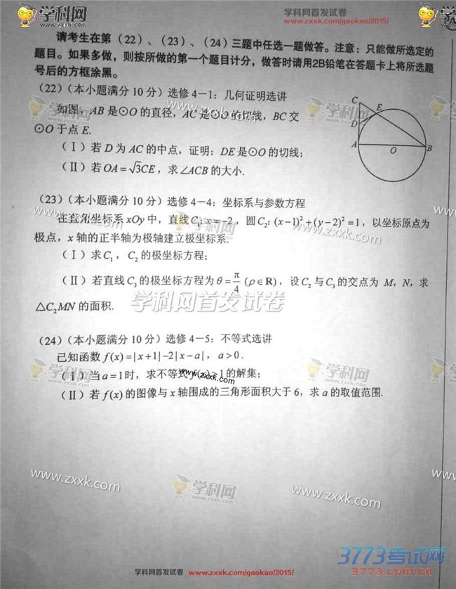 2015年新课标1数学理科高考试题及答案(图片)适用地区:河南 河北 山西 江西