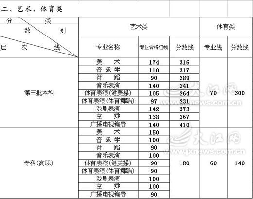 此外,今年外省第三批本科(独立学院)艺术类录取文化控制分数线仍然执行200分;专科(高职)院校艺术类录取文化控制分数线为180分。