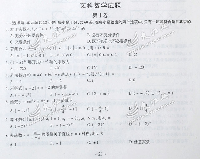 [组图]2010年江西高考数学文科试题及答案