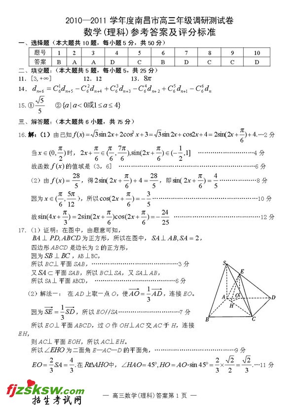 [组图]2011南昌高三调研数学理科试题答案评分标准