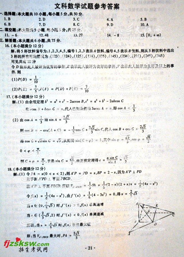 [图文]江西2011年高考文科数学试题参考答案