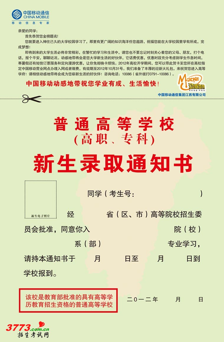 2012年江西省属高职专科院校(省外)新生录取通知书