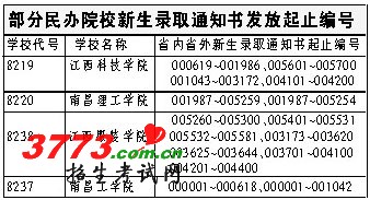 [图文]2012江西高职及民办院校本科录取通知书编号公布
