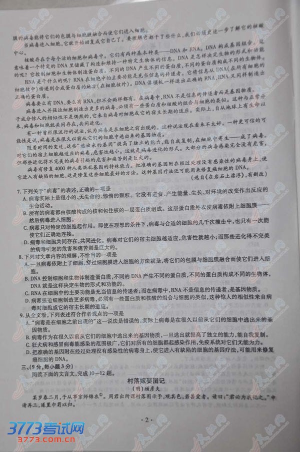[组图]2013江西高考语文试题及答案