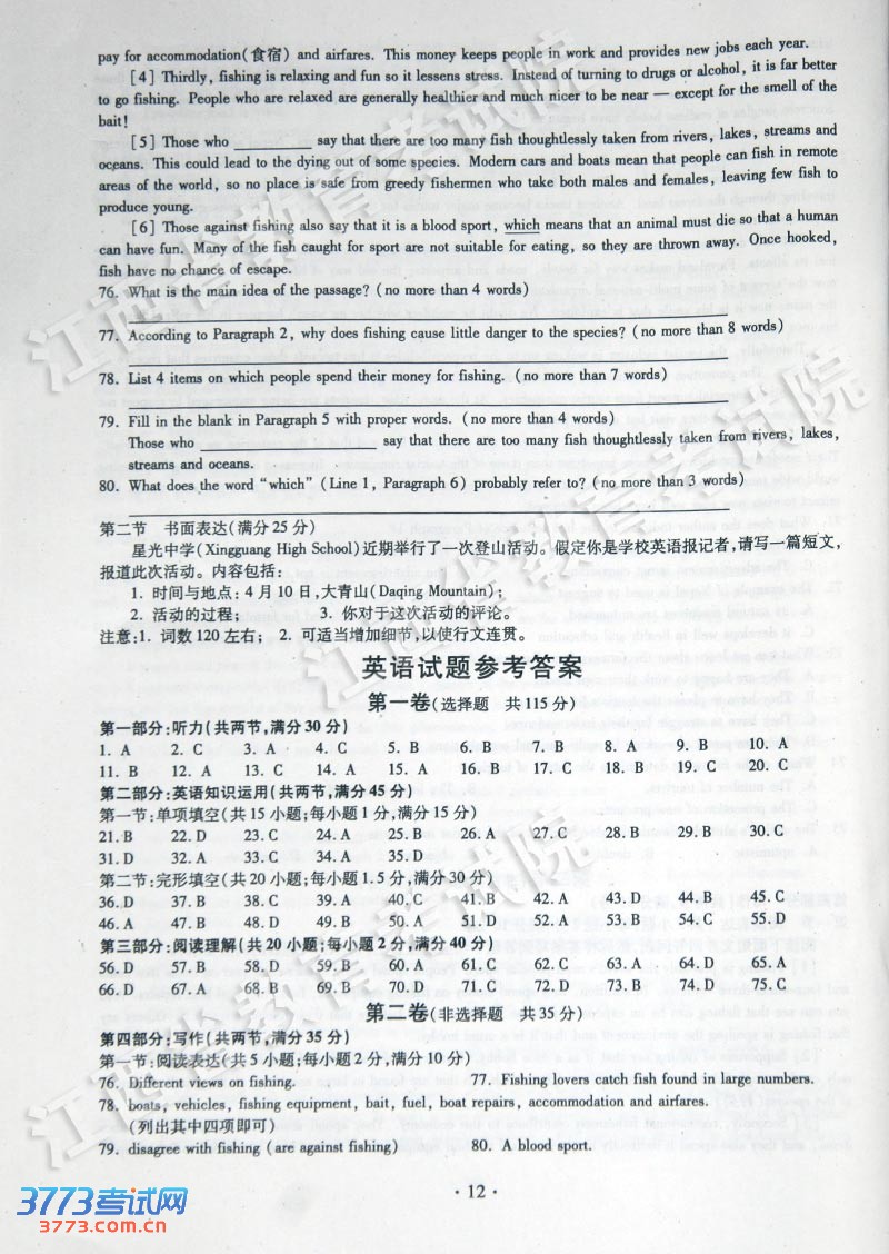 [组图]2013江西高考英语试题及答案