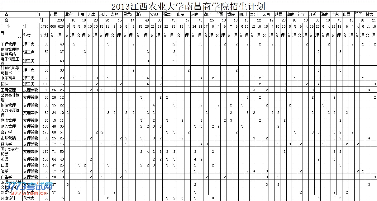 [图文]2013年江西农业大学南昌商学院分省分专业招生计划