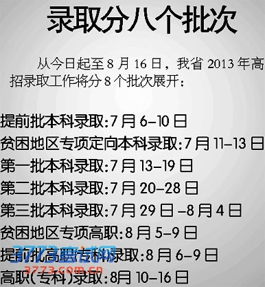 会议还要求严格执行录检原则。在投档范围内的考生是否录取以及录取何专业由高校自行确定,对未实行平行志愿批次的录取,即提前批次和高职(专科)批次要求执行“三分之一”的原则:对排名前三分之一的考生原则上不退档;对中间三分之一的尽量不退档;对最后三分之一的由高校择优资助确定是否录取,遗留问题由学校解释。