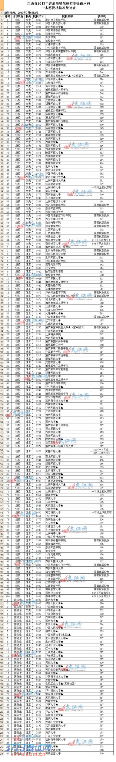 据了解,参加江西省2013年高招提前批本科录取的文史类院校共有70个校次,7月6日第一志愿投档满额有49所。