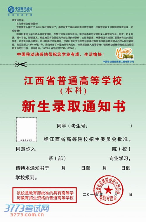 [图文]2013江西高考新生录取通知书(本科)