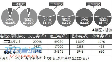 本科理工类录取人数是文史类2.5倍多