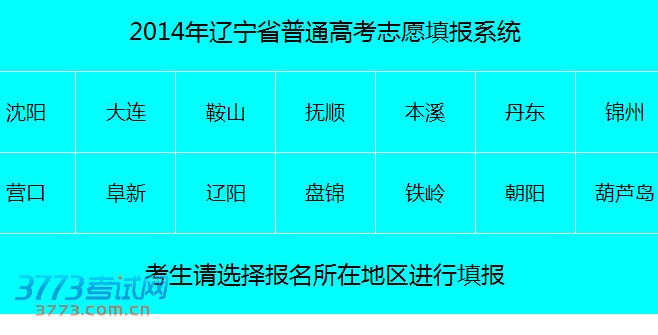二是在地址栏中直接输入网址:http://gkzy.lnzsks.com登录。进入网上填报志愿页面后,选择所在地市进行志愿填报。