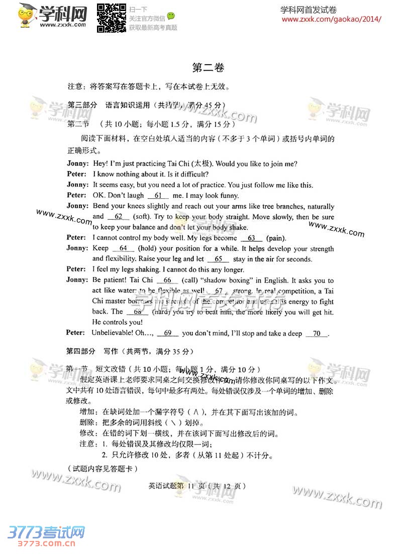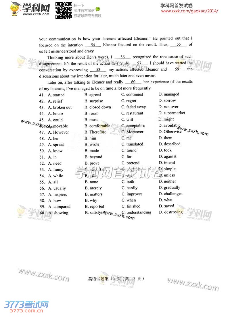 [组图]2014辽宁高考英语试题及答案
