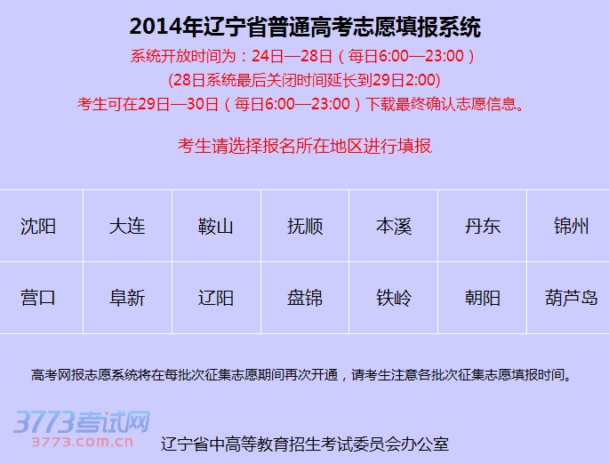 A通过“辽宁招生考试之窗”网站(www.lnzsks.com)的“2014年高考志愿填报入口”链接登录;