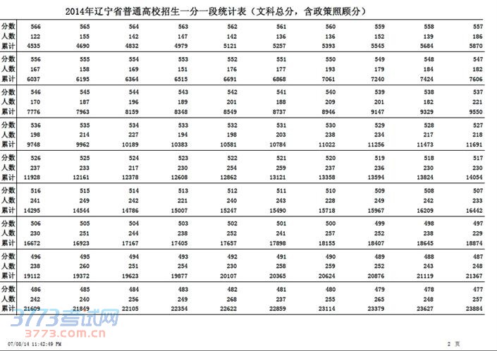关于公布辽宁省2014年高考成绩一分一段统计表的说明