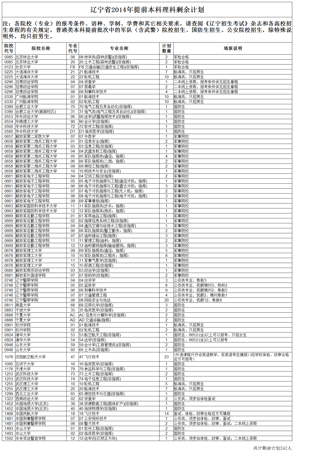 2014辽宁高考本科提前批理科剩余计划