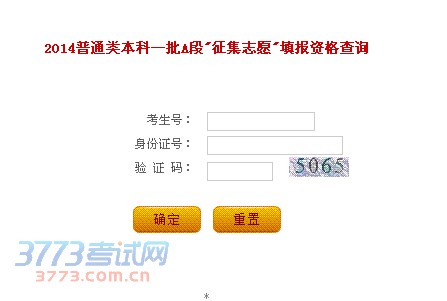 2014普通类本科一批A段"征集志愿"填报资格查询