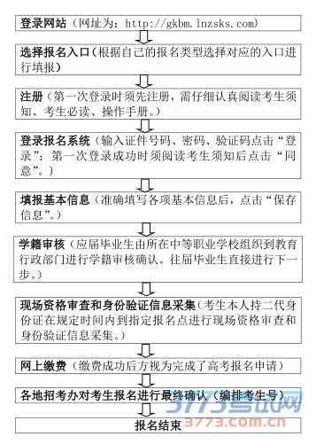 2015年我省中职升学考生报名将采用网上填报基本信息、现场资格审查和身份验证信息采集、网上缴费相结合的方式。考生报名流程如下:
