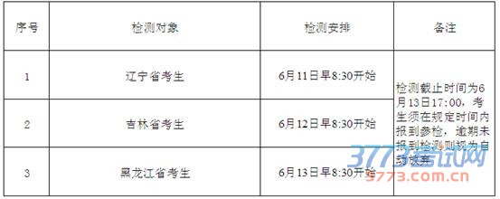 三、辽宁省检测时间安排