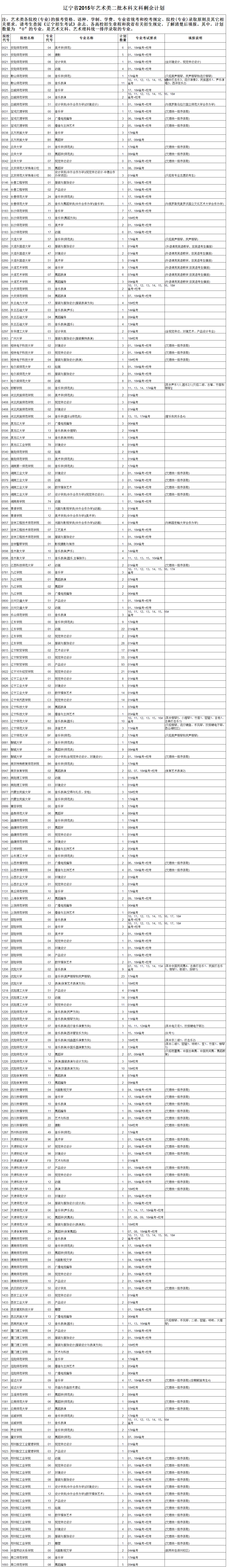 [图文]2015辽宁高考艺术类二本文科剩余计划