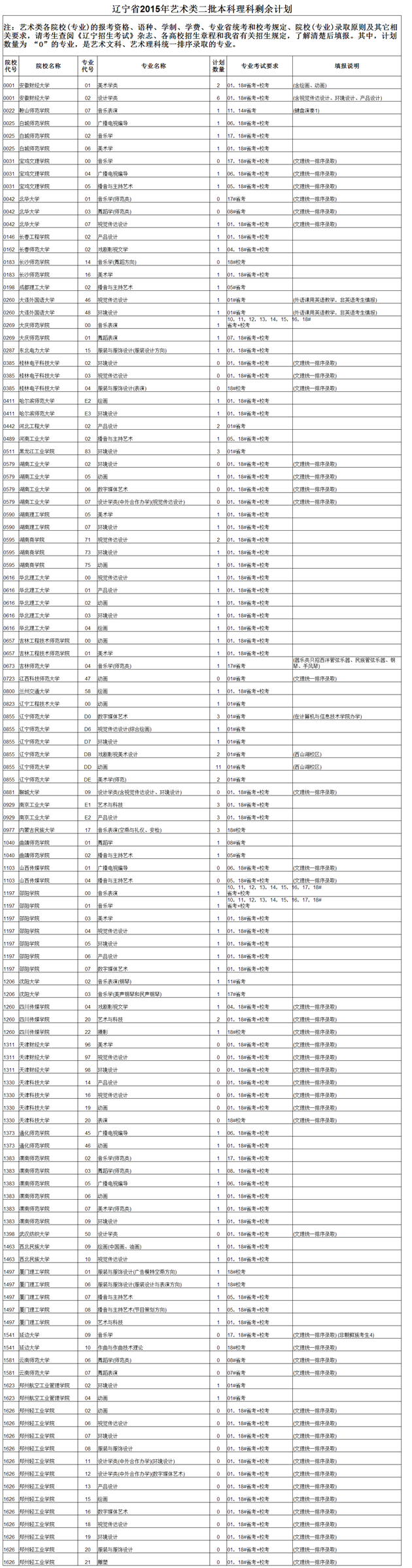 [图文]2015辽宁高考艺术类二本理科剩余计划