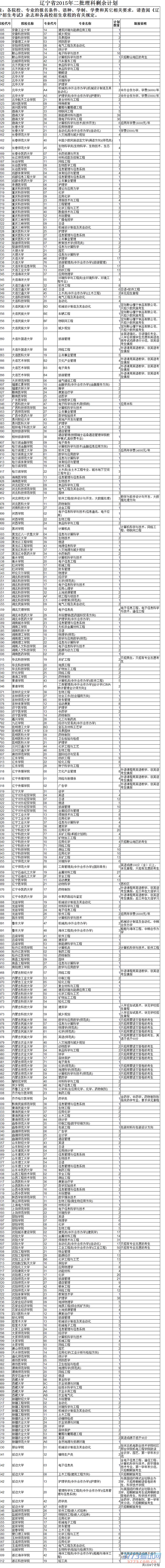 2015年辽宁省普通高校招生录取本科第二批理科剩余计划(点击放大查看)